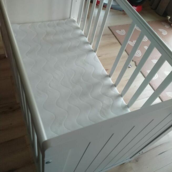 Łóżeczko dziecięce z materacykiem drewniane szczebelki dwupoziomowe stan dobry do dalszego użytku. Tel nr 692 500 806