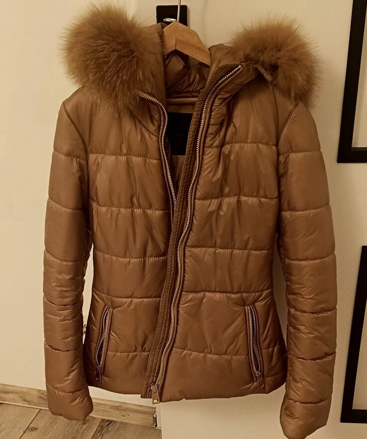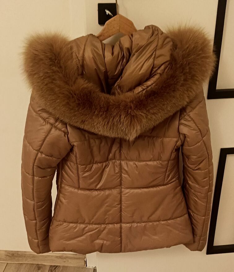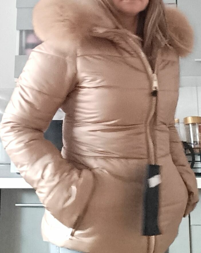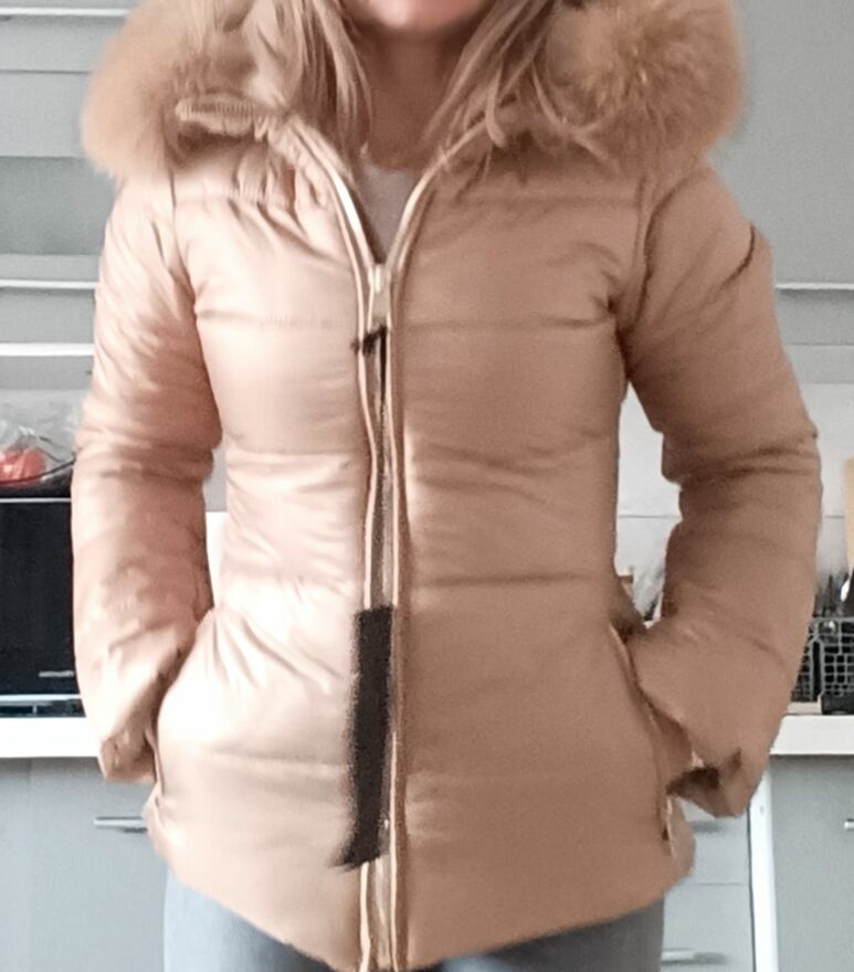 Nowa piękna kurtka włoskiej firmy flo cloNaturalny kaptur Kurteczka cieplutka puchowa